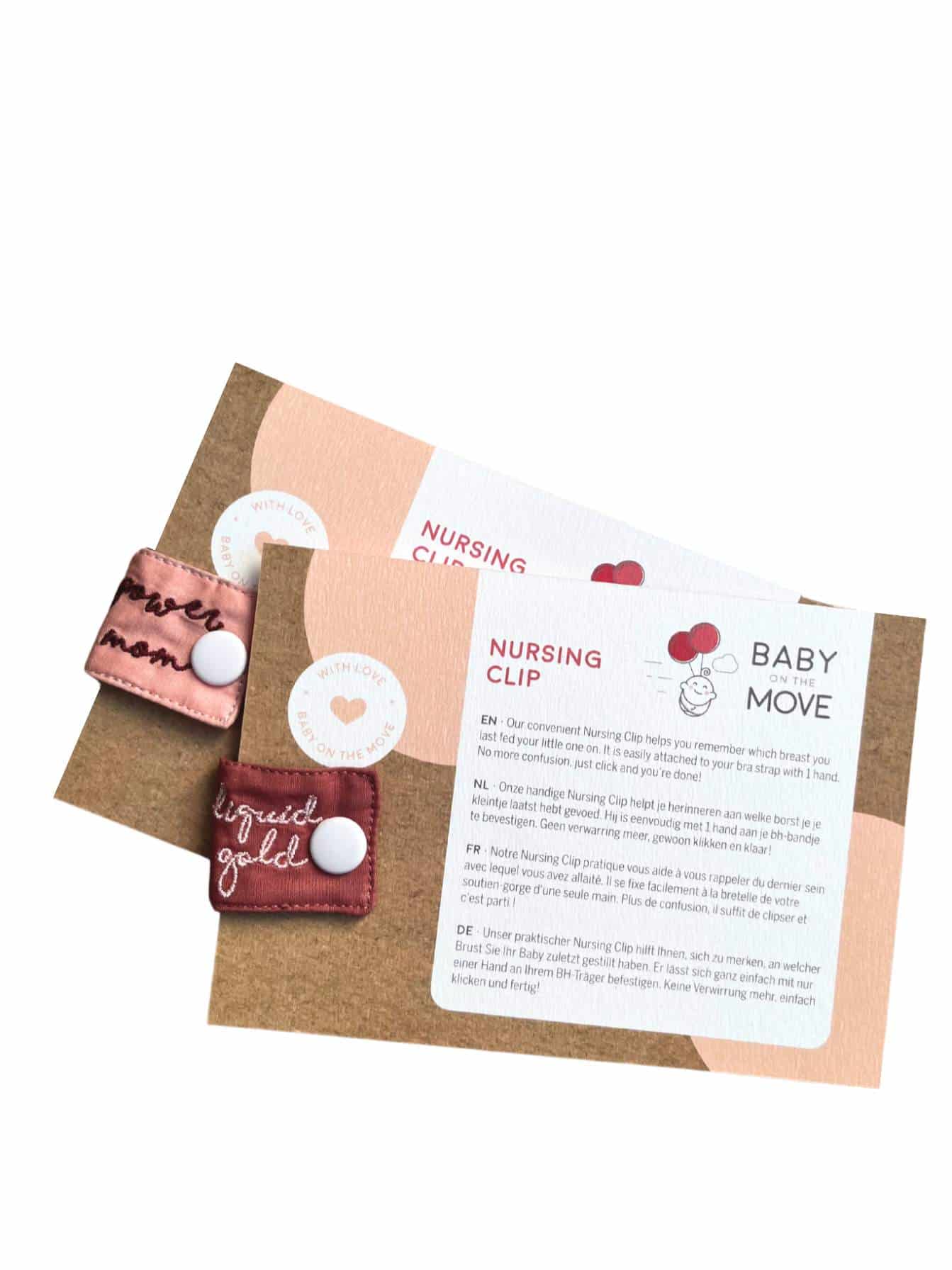 Diese Packung enthält 2 Stillclips: 1 Liquid Gold, 1 Power Mom.