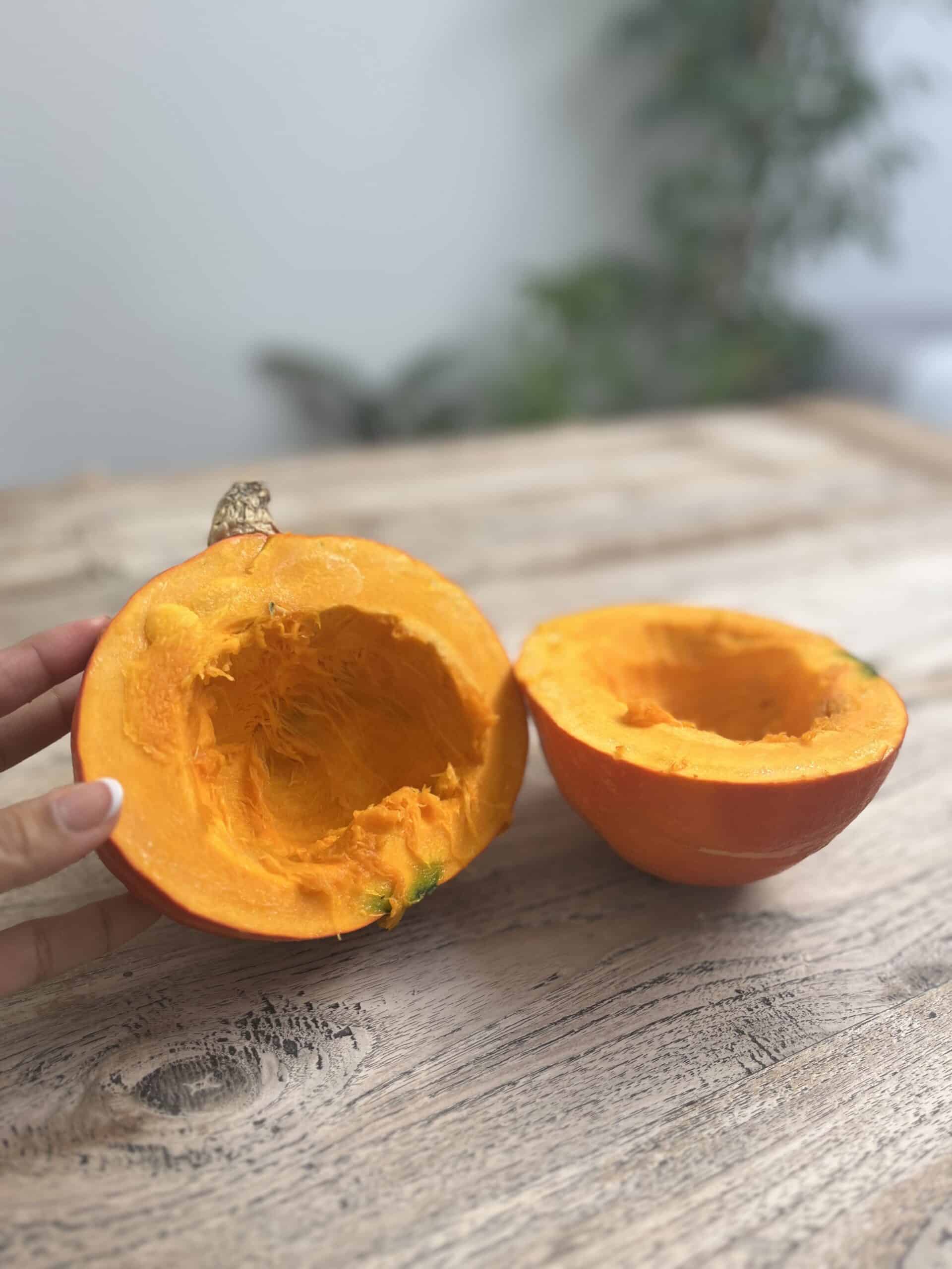 - Preparation: Slice the pumpkin in half, removing all seeds and fibers.