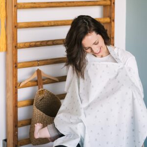 Our Owego nursing cover is convenient for breastfeeding anywhere. The Breastfeeding Cover is made of 100% hand-picked Peruvian Pima cotton which contains exceptionally long cotton fibers. As a result, our cover feels luxuriously soft and it is also durable, breathable and hypoallergenic. Exactly the quality that we want to offer our little ones!