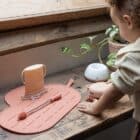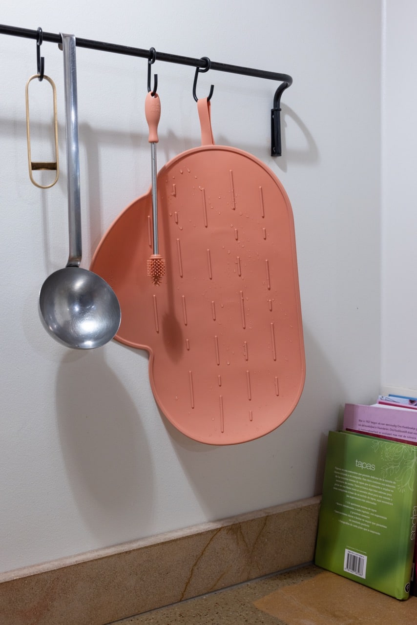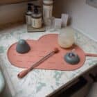 The Yummy Mat provides a hygienic surface for drying and doubles as a placemat for little ones on the go. The raised edges keep spilled water on the mat. Roll the mat up with the brush inside for easy storage and transport, or use the handy strap to hang it up to dry. It fits effortlessly into any diaper bag, kitchen drawer, or suitcase, so you’re always prepared, no matter the situation. It’s made of dust-repellent silicone, which means that no annoying hairs or other dirt sticks to the mat and keeps it clean.