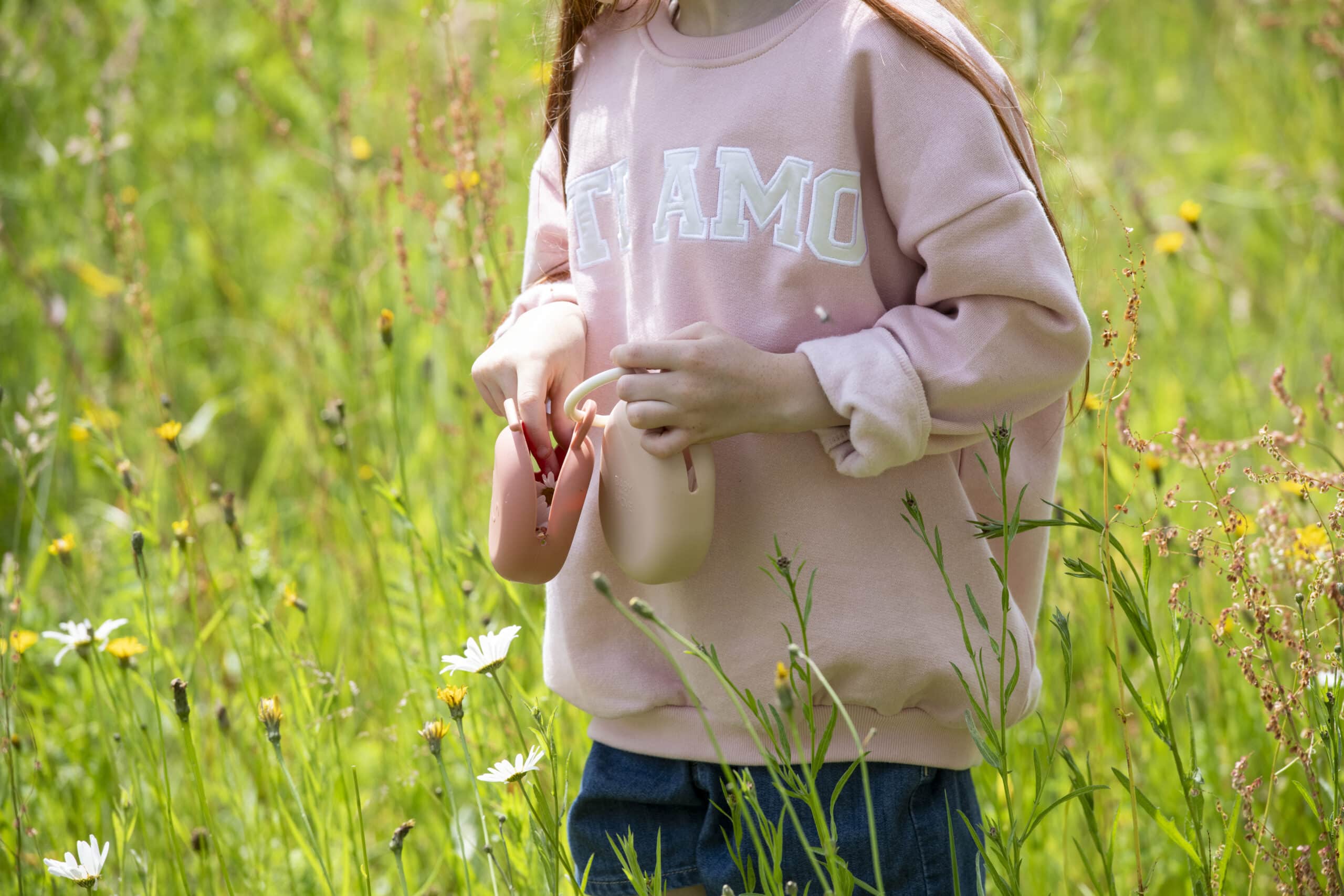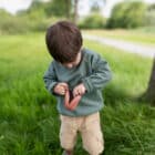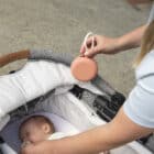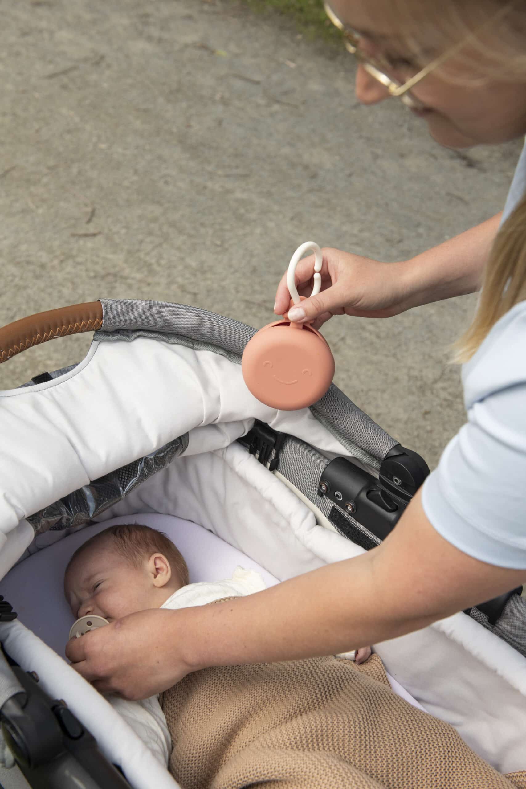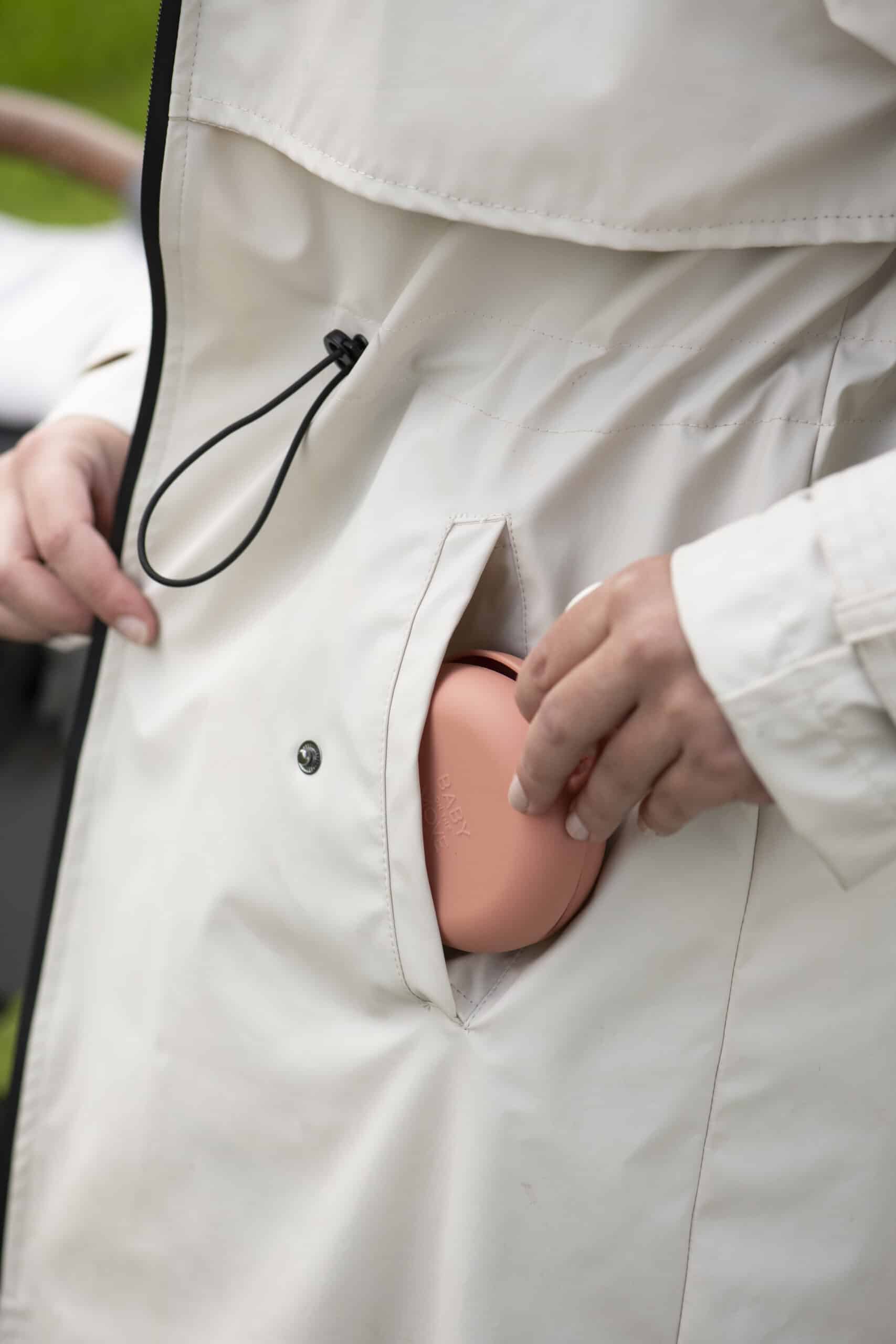 Doordat ik het aan mijn tas of broeklus hang, hoef ik geen grote luiertas mee te sleuren. En Flo herkent het doosje intussen al van ver – dan begint ze meteen te grabbelen.