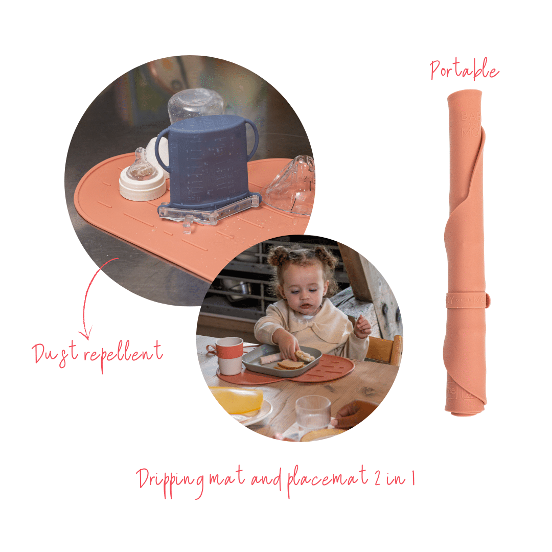 Our Owego Yummy Mat is a versatile placemat for messy eaters that doubles as a drying mat. Perfect for drying bottles, teats, pump parts, and other essentials. It provides a clean and hygienic surface, even when space is limited.