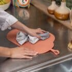 The raised edges ensure that any spilled water stays on the mat. Roll up the mat for easy storage and transportation, or use the handy strap to hang it up to dry. It fits effortlessly in any diaper bag, kitchen drawer or suitcase, so you’re always prepared, whatever the situation. Plus it is made of dust-repellent silicone, which prevents annoying hairs or other dirt from sticking to the mat and keeps it clean.