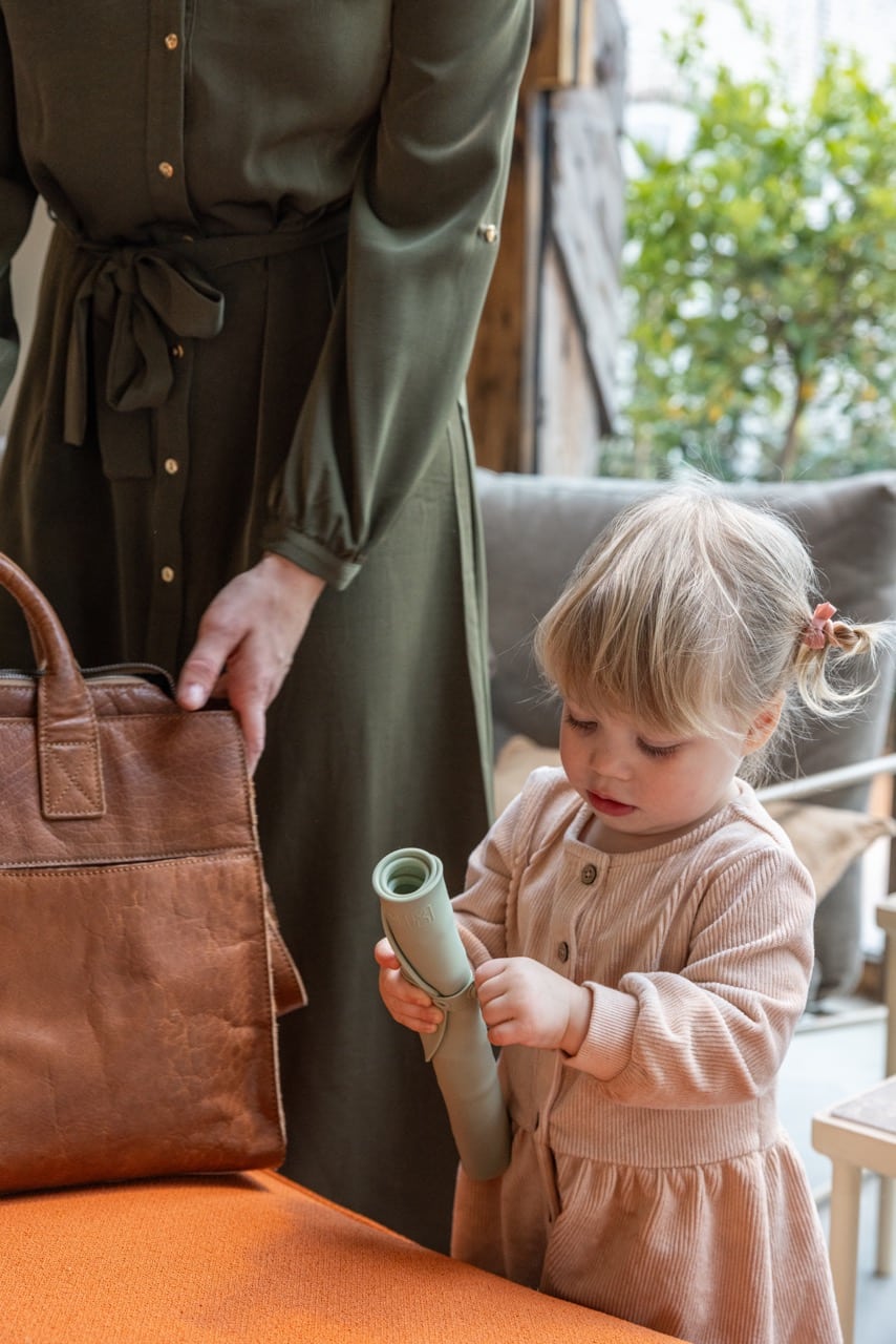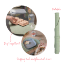 Les bords surélevés garantissent que l’eau renversée reste sur le tapis. Enroulez le tapis pour le ranger et le transporter facilement, ou utilisez la sangle pratique pour le suspendre et le faire sécher. Il se glisse sans effort dans un sac à langer, un tiroir de cuisine ou une valise. Vous êtes donc toujours prête, quelle que soit la situation. De plus, il est fabriqué en silicone anti-poussière, ce qui signifie qu’aucun cheveu gênant ou autre saleté n’adhère au tapis.