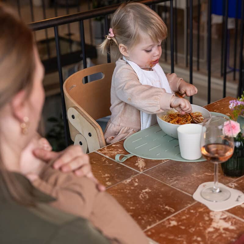 We weten wat ouders nodig hebben! Daarom is het materiaal dat we voor onze placemat gebruiken stofafstotend. Dus geen plakkerige haren en stof meer die erop kleven.