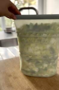 Gebruik de Yummy Storage om eenvoudig zelfgemaakte purees, soepen, sauzen of zelfs gesneden fruit en groenten te bewaren. Hij houdt alles vers en georganiseerd in je koelkast of vriezer. Bij gebruik in de grootste maat (2300 ml) is de sluiting volledig lekvrij. De Yummy Storage is gemaakt van 100% voedselveilige silicone en is veilig, herbruikbaar en eenvoudig te reinigen in de vaatwasser. Je kan hem ook in de microgolfoven gebruiken om snel op te warmen (zonder de sluiting). Hij zal in een mum van tijd een onmisbaar item in je keuken worden.